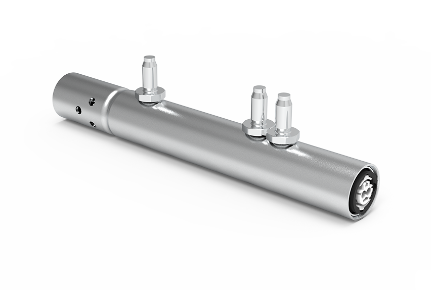 Eine wassergekühlte Elektrode positioniert eine Membrane präzise am fixierten Rohr. Per Widerstandsschweißen mit Kondensatorentladung wird die Membrane in das Rohr geschweißt. Eine Wechselaufnahme ermöglicht dabei kurze Taktzeiten.