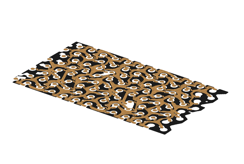 Mittels Roboter werden Klebestreifen auf eine definierte Länge zugeschnitten und auf eine Isolierplatte appliziert. Wichtig ist dabei die exakte Positionierung. Nach einer optischen Kontrolle werden die Zellverbinder auf die Platte geschweißt und fix montiert.