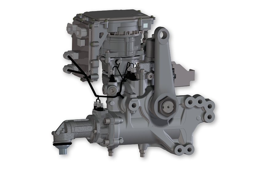 This STIWA machine assembles and tests energy-saving steering gears for trucks. The electro-hydraulic systems are manufactured in 13 variants for left-hand and right-hand drive vehicles and are intended to enable autonomous driving in the future.